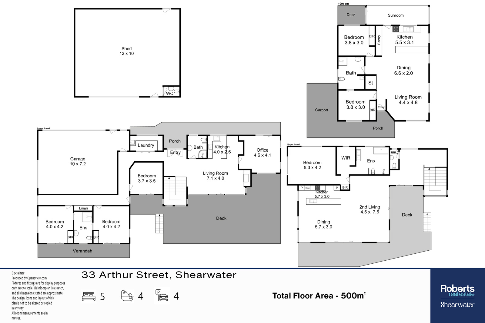A leafy perimeter of established gardens and sweeping lawns, secludes this executive home and self-contained villa within Shearwater township. Elevated on a 3050m2 block, the home was architecturally designed and built in 2008 and has commanding views of the town, estuary and beyond. Careful selection of quality inclusions from the custom designed staircase to the Tassie oak flooring, the spacious deck areas to the solar system, this residence is designed for those looking for a home that showcases quality and style with a sense of home. The main home features 4 generous bedrooms, each private and capturing views of the gardens and the rural outlook. The master suite on the upper level, is defined, with a spacious ensuite including spa bath and dressing space. For the entertainer, each level of the home features a spacious living area. On the ground level, the lounge area with an impressive stone facade fireplace is the ideal place to cosy up in winter with a small kitchenette offering a great space for family gatherings. In the warmer months, you can open the ground floor living area to the large outdoor deck area, an ideal space for afternoon barbeques. And for those that work from home, the large office/ study with separate entrance is quiet and removed from the family spaces. Upstairs continues to impress, with superior views of the area and waterways creating an everchanging picture. This view is the backdrop to the substantial open plan design, the striking kitchen with new appliances, a grand dining area and the second living area – all opening to a spacious deck, there is no end of space for the family. Within the grounds, a separate 2 bedroom villa continues the level of quality and considered design. Open plan living, dining and kitchen, bathed in sunshine and 2 large bedrooms with a combined bathroom/laundry. And on rainy days, the enclosed sunroom is a great way to enjoy the outdoors. Privacy for the villa with clever planting and screening creates a villa of sanctuary and offers the ideal option for a generational family, air BNB or permanent tenanted residence. A home of this calibre is rare and deserves your inspection.