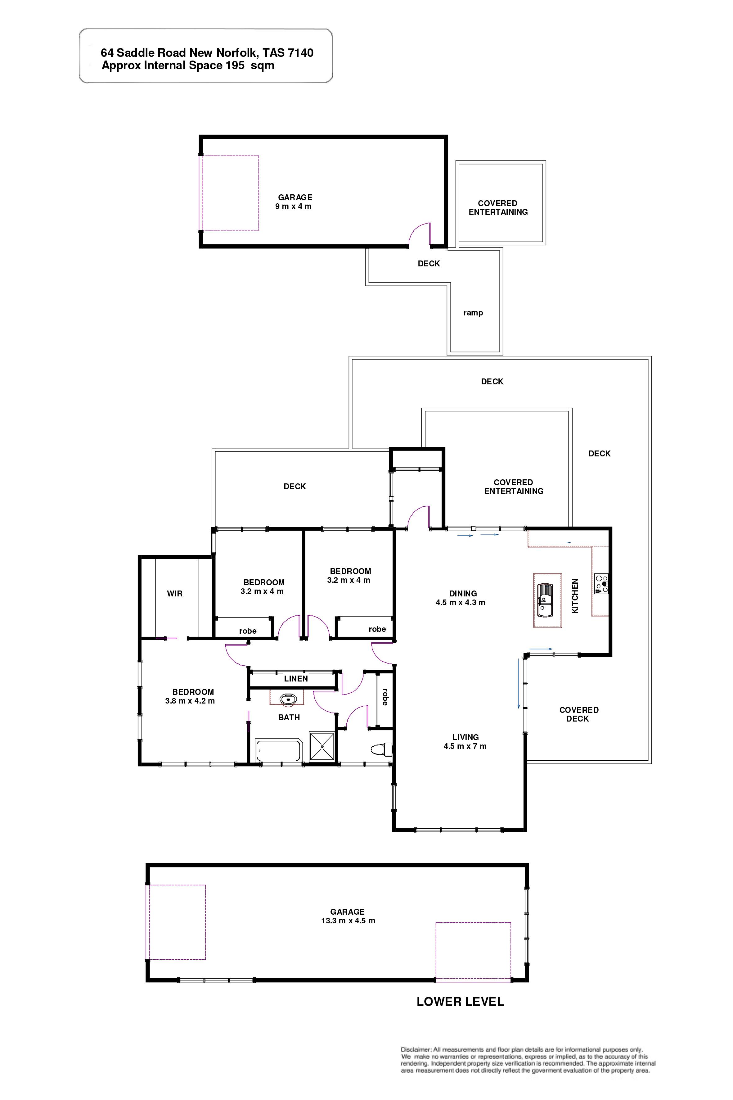 Built in 2012 and occupied by the same family since, it offers panoramic, 360-degree views of New Norfolk and the Derwent Valley from the living and deck areas, features landscaped gardens including a variety of mature fruit trees, two sheds – one rustic and the other a Colorbond structure large enough to garage a motor home or caravan – and scope to build or renovate the downstairs space (STCA), currently used as a storage/garage area.
