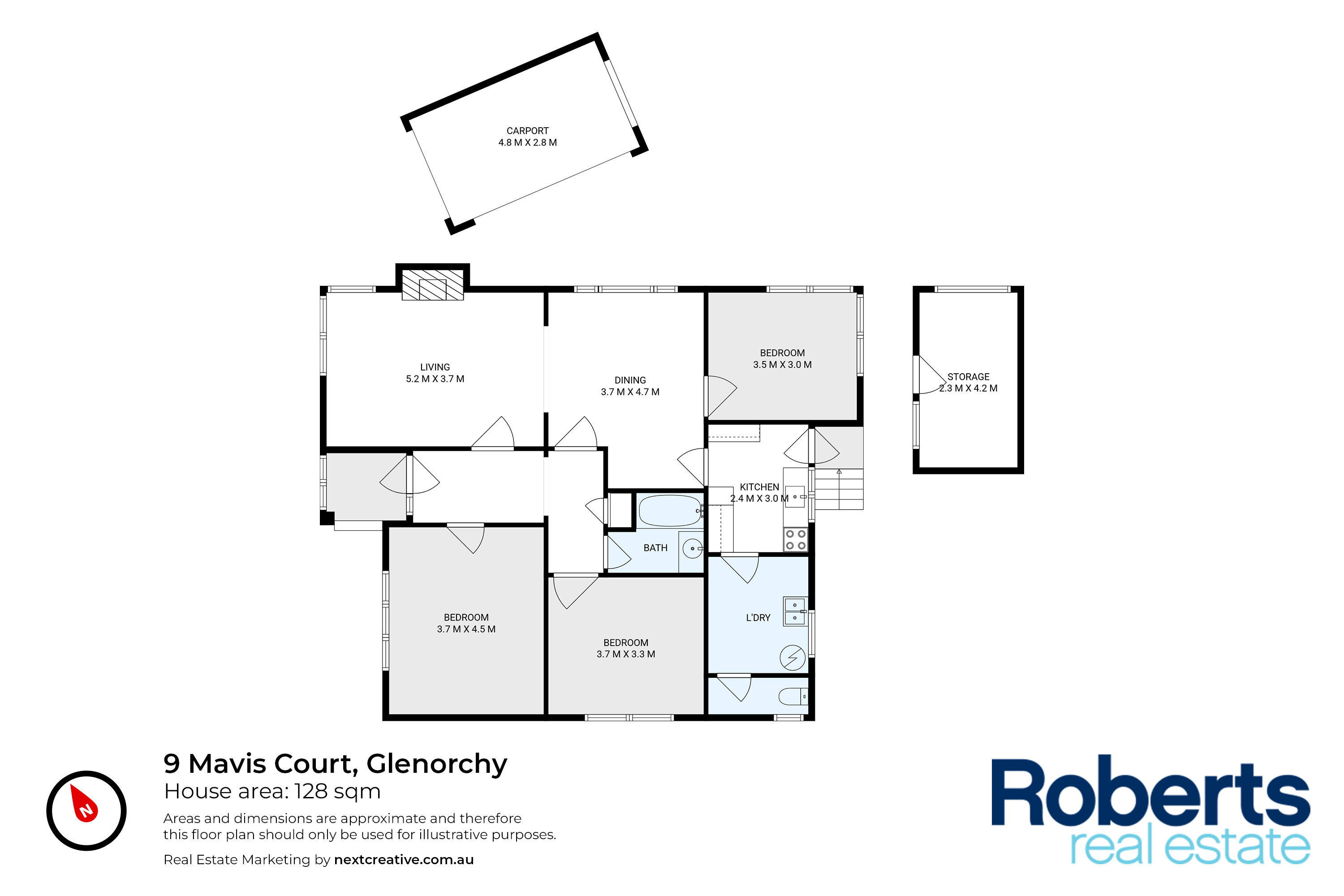 - Total Floor Area: 128 m²